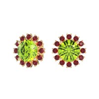 These Peridot earrings and made in 14k Yellow Gold with top quality Natural Peridot and Ruby gemstones. These Stud Earrings Feature A Classic Halo Design With An Antique-inspired Aesthetic. A Brilliant Center Stone Is Encircled By A Sparkling Halo Of Smaller Gems, Offering Enhanced Brilliance And A Timeless, Vintage Charm. Perfect For Adding Refined Elegance To Any Look, These Studs Provide Significant Sparkle With A Sophisticated Touch. Free shipping, returns, and a lifetime warranty make luxury worry-free