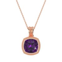 This Amethyst Classic Necklace is casted in 14K Rose Gold. We use only exceptionally fine gemstones, truly on par with those found in the world's most exclusive boutiques and representing the top 10% available globally. This Art Deco-inspired Pendant Showcases A Classic Cushion-cut Solitaire. The Setting Is Beautifully Finished with A Delicate Milgrain Detail Along The Edges, Providing A Vintage Look And Feel. You'll get a complimentary 18-inch chain with every necklace. Plus, enjoy a 30-day, hassle-free return policy (we even cover return shipping!) and a Lifetime Warranty for peace of mind.