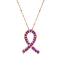 This Amethyst Fashion Necklace is casted in 14K Rose Gold. We use only exceptionally fine gemstones, truly on par with those found in the world's most exclusive boutiques and representing the top 10% available globally. Ribbon-shaped Pendant Pavé-set with Numerous Small, Round Stones. A Delicate And Meaningful Design. You'll get a complimentary 18-inch chain with every necklace. Plus, enjoy a 30-day, hassle-free return policy (we even cover return shipping!) and a Lifetime Warranty for peace of mind.