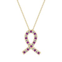 This Amethyst and Lab Diamond Necklace is casted in 14k Yellow Gold. This Women’s Fashion necklace features exceptionally fine gemstones, on par with those found in the world's most exclusive boutiques and among the top 10% available globally. Ribbon-shaped Pendant Pavé-set with Numerous Small, Round Stones. A Delicate And Meaningful Design. This necklace comes with a complimentary 18-inch chain. Enjoy the confidence of our 30-day, stress-free return policy—with return shipping fully covered. Each piece is also accompanied by a Lifetime Warranty, ensuring lasting beauty and peace of mind.
