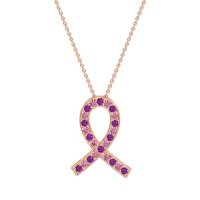 This Amethyst and Pink Tourmaline Necklace is casted in 14K Rose Gold. This Women’s Fashion necklace features exceptionally fine gemstones, on par with those found in the world's most exclusive boutiques and among the top 10% available globally. Ribbon-shaped Pendant Pavé-set with Numerous Small, Round Stones. A Delicate And Meaningful Design. This necklace comes with a complimentary 18-inch chain. Enjoy the confidence of our 30-day, stress-free return policy—with return shipping fully covered. Each piece is also accompanied by a Lifetime Warranty, ensuring lasting beauty and peace of mind.