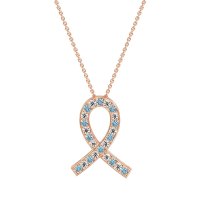 This Aquamarine and Lab Diamond Necklace is casted in 14K Rose Gold. This Women’s Fashion necklace features exceptionally fine gemstones, on par with those found in the world's most exclusive boutiques and among the top 10% available globally. Ribbon-shaped Pendant Pavé-set with Numerous Small, Round Stones. A Delicate And Meaningful Design. This necklace comes with a complimentary 18-inch chain. Enjoy the confidence of our 30-day, stress-free return policy—with return shipping fully covered. Each piece is also accompanied by a Lifetime Warranty, ensuring lasting beauty and peace of mind.