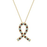 This Aquamarine and Ruby Necklace is casted in 18k Yellow Gold. This Women’s Fashion necklace features exceptionally fine gemstones, on par with those found in the world's most exclusive boutiques and among the top 10% available globally. Ribbon-shaped Pendant Pavé-set with Numerous Small, Round Stones. A Delicate And Meaningful Design. This necklace comes with a complimentary 18-inch chain. Enjoy the confidence of our 30-day, stress-free return policy—with return shipping fully covered. Each piece is also accompanied by a Lifetime Warranty, ensuring lasting beauty and peace of mind.