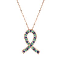 This Blue Sapphire and Emerald Necklace is casted in 14K Rose Gold. This Women’s Fashion necklace features exceptionally fine gemstones, on par with those found in the world's most exclusive boutiques and among the top 10% available globally. Ribbon-shaped Pendant Pavé-set with Numerous Small, Round Stones. A Delicate And Meaningful Design. This necklace comes with a complimentary 18-inch chain. Enjoy the confidence of our 30-day, stress-free return policy—with return shipping fully covered. Each piece is also accompanied by a Lifetime Warranty, ensuring lasting beauty and peace of mind.