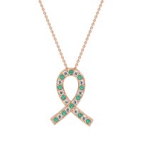 This Emerald and Lab Diamond Necklace is casted in 14K Rose Gold. This Women’s Fashion necklace features exceptionally fine gemstones, on par with those found in the world's most exclusive boutiques and among the top 10% available globally. Ribbon-shaped Pendant Pavé-set with Numerous Small, Round Stones. A Delicate And Meaningful Design. This necklace comes with a complimentary 18-inch chain. Enjoy the confidence of our 30-day, stress-free return policy—with return shipping fully covered. Each piece is also accompanied by a Lifetime Warranty, ensuring lasting beauty and peace of mind.