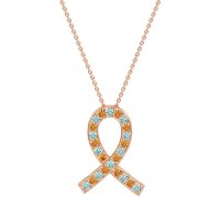 This Swiss Blue Topaz and Citrine Necklace is casted in 14K Rose Gold. This Women’s Fashion necklace features exceptionally fine gemstones, on par with those found in the world's most exclusive boutiques and among the top 10% available globally. Ribbon-shaped Pendant Pavé-set with Numerous Small, Round Stones. A Delicate And Meaningful Design. This necklace comes with a complimentary 18-inch chain. Enjoy the confidence of our 30-day, stress-free return policy—with return shipping fully covered. Each piece is also accompanied by a Lifetime Warranty, ensuring lasting beauty and peace of mind.