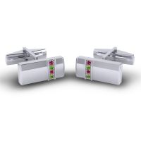 These personalized cufflinks feature Ruby and Peridot. We only use the top 10% of gemstones available, every facet meticulously placed, they create a masterpiece of radiance that captivates the senses. This Pair Of Cufflinks Features A Gemstone And Metal Design That Showcases The Elegance Of A Minimalist Look. Each Cufflink Hosts 3 Brilliant Round Gems Of Your Choice in A Pave Setting Over The Face Of The Piece. For the one who appreciates the finer things, these mens cufflinks are an unspoken badge of distinction. Choose from a variety of gems to make a truly unique pair of custom cufflinks. Enjoy free shipping, free returns and a lifetime warranty.