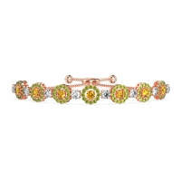 These 14K Rose Gold bracelets feature fine quality Peridot gemstones. This Bolo Bracelet Features interlocking Circles Of Sparkling Gemstones, Secured By Four Delicate Prongs, The Gemstones Appear To Float Weightlessly within Their Luminous Halos, Casting An Ethereal Glow On Your Wrist. Free shipping, returns, and a lifetime warranty make luxury worry-free