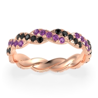 This Amethyst wedding ring is casted in 14K Rose Gold and set with fine quality Amethyst and Black Onyx. All of the gemstones we use are of the top 10% available, those found in fine quality boutiques across the world. This Amethyst wedding band can also be added to your collection of minimalist Amethyst rings. This Unique Eternity Band Showcases An intricate Braided Motif Adorned with Shimmering Pave Stones. Free shipping, returns, resizing, and a lifetime warranty ensure you love your purchase.
