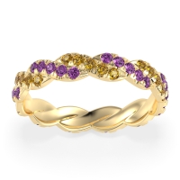 This Citrine wedding ring is casted in 14k Yellow Gold and set with fine quality Citrine and Amethyst. All of the gemstones we use are of the top 10% available, those found in fine quality boutiques across the world. This Citrine wedding band can also be added to your collection of minimalist Citrine rings. This Unique Eternity Band Showcases An intricate Braided Motif Adorned with Shimmering Pave Stones. Free shipping, returns, resizing, and a lifetime warranty ensure you love your purchase.