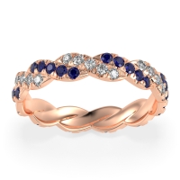 This Diamond wedding ring is casted in 14K Rose Gold and set with fine quality Diamond and Blue Sapphire. All of the gemstones we use are of the top 10% available, those found in fine quality boutiques across the world. This Diamond wedding band can also be added to your collection of minimalist Diamond rings. This Unique Eternity Band Showcases An intricate Braided Motif Adorned with Shimmering Pave Stones. Free shipping, returns, resizing, and a lifetime warranty ensure you love your purchase.