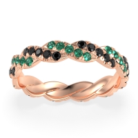 This Emerald wedding ring is casted in 14K Rose Gold and set with fine quality Emerald and Black Onyx. All of the gemstones we use are of the top 10% available, those found in fine quality boutiques across the world. This Emerald wedding band can also be added to your collection of minimalist Emerald rings. This Unique Eternity Band Showcases An intricate Braided Motif Adorned with Shimmering Pave Stones. Free shipping, returns, resizing, and a lifetime warranty ensure you love your purchase.