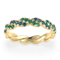 This Emerald wedding ring is casted in 14k Yellow Gold and set with fine quality Emerald and London Blue Topaz. All of the gemstones we use are of the top 10% available, those found in fine quality boutiques across the world. This Emerald wedding band can also be added to your collection of minimalist Emerald rings. This Unique Eternity Band Showcases An intricate Braided Motif Adorned with Shimmering Pave Stones. Free shipping, returns, resizing, and a lifetime warranty ensure you love your purchase.