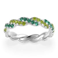 This Emerald wedding ring is casted in 14k White Gold and set with fine quality Emerald and Peridot. All of the gemstones we use are of the top 10% available, those found in fine quality boutiques across the world. This Emerald wedding band can also be added to your collection of minimalist Emerald rings. This Unique Eternity Band Showcases An intricate Braided Motif Adorned with Shimmering Pave Stones. Free shipping, returns, resizing, and a lifetime warranty ensure you love your purchase.