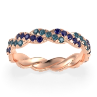 This London Blue Topaz wedding ring is casted in 18K Rose Gold and set with fine quality London Blue Topaz and Blue Sapphire. All of the gemstones we use are of the top 10% available, those found in fine quality boutiques across the world. This London Blue Topaz wedding band can also be added to your collection of minimalist London Blue Topaz rings. This Unique Eternity Band Showcases An intricate Braided Motif Adorned with Shimmering Pave Stones. Free shipping, returns, resizing, and a lifetime warranty ensure you love your purchase.