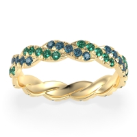 This London Blue Topaz wedding ring is casted in 14k Yellow Gold and set with fine quality London Blue Topaz and Emerald. All of the gemstones we use are of the top 10% available, those found in fine quality boutiques across the world. This London Blue Topaz wedding band can also be added to your collection of minimalist London Blue Topaz rings. This Unique Eternity Band Showcases An intricate Braided Motif Adorned with Shimmering Pave Stones. Free shipping, returns, resizing, and a lifetime warranty ensure you love your purchase.