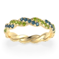 This London Blue Topaz wedding ring is casted in 14k Yellow Gold and set with fine quality London Blue Topaz and Peridot. All of the gemstones we use are of the top 10% available, those found in fine quality boutiques across the world. This London Blue Topaz wedding band can also be added to your collection of minimalist London Blue Topaz rings. This Unique Eternity Band Showcases An intricate Braided Motif Adorned with Shimmering Pave Stones. Free shipping, returns, resizing, and a lifetime warranty ensure you love your purchase.