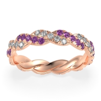 This Lab Diamond wedding ring is casted in 18K Rose Gold and set with fine quality Lab Diamond and Amethyst. All of the gemstones we use are of the top 10% available, those found in fine quality boutiques across the world. This Lab Diamond wedding band can also be added to your collection of minimalist Lab Diamond rings. This Unique Eternity Band Showcases An intricate Braided Motif Adorned with Shimmering Pave Stones. Free shipping, returns, resizing, and a lifetime warranty ensure you love your purchase.