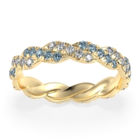 This Lab Diamond wedding ring is casted in 14k Yellow Gold and set with fine quality Lab Diamond and Aquamarine. All of the gemstones we use are of the top 10% available, those found in fine quality boutiques across the world. This Lab Diamond wedding band can also be added to your collection of minimalist Lab Diamond rings. This Unique Eternity Band Showcases An intricate Braided Motif Adorned with Shimmering Pave Stones. Free shipping, returns, resizing, and a lifetime warranty ensure you love your purchase.
