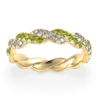 This Lab Diamond wedding ring is casted in 18k Yellow Gold and set with fine quality Lab Diamond and Peridot. All of the gemstones we use are of the top 10% available, those found in fine quality boutiques across the world. This Lab Diamond wedding band can also be added to your collection of minimalist Lab Diamond rings. This Unique Eternity Band Showcases An intricate Braided Motif Adorned with Shimmering Pave Stones. Free shipping, returns, resizing, and a lifetime warranty ensure you love your purchase.