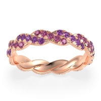 This Pink Tourmaline wedding ring is casted in 14K Rose Gold and set with fine quality Pink Tourmaline and Amethyst. All of the gemstones we use are of the top 10% available, those found in fine quality boutiques across the world. This Pink Tourmaline wedding band can also be added to your collection of minimalist Pink Tourmaline rings. This Unique Eternity Band Showcases An intricate Braided Motif Adorned with Shimmering Pave Stones. Free shipping, returns, resizing, and a lifetime warranty ensure you love your purchase.