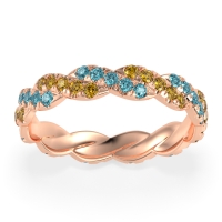 This Swiss Blue Topaz wedding ring is casted in 14K Rose Gold and set with fine quality Swiss Blue Topaz and Citrine. All of the gemstones we use are of the top 10% available, those found in fine quality boutiques across the world. This Swiss Blue Topaz wedding band can also be added to your collection of minimalist Swiss Blue Topaz rings. This Unique Eternity Band Showcases An intricate Braided Motif Adorned with Shimmering Pave Stones. Free shipping, returns, resizing, and a lifetime warranty ensure you love your purchase.