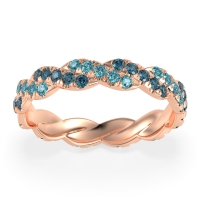 This Swiss Blue Topaz wedding ring is casted in 18K Rose Gold and set with fine quality Swiss Blue Topaz and London Blue Topaz. All of the gemstones we use are of the top 10% available, those found in fine quality boutiques across the world. This Swiss Blue Topaz wedding band can also be added to your collection of minimalist Swiss Blue Topaz rings. This Unique Eternity Band Showcases An intricate Braided Motif Adorned with Shimmering Pave Stones. Free shipping, returns, resizing, and a lifetime warranty ensure you love your purchase.