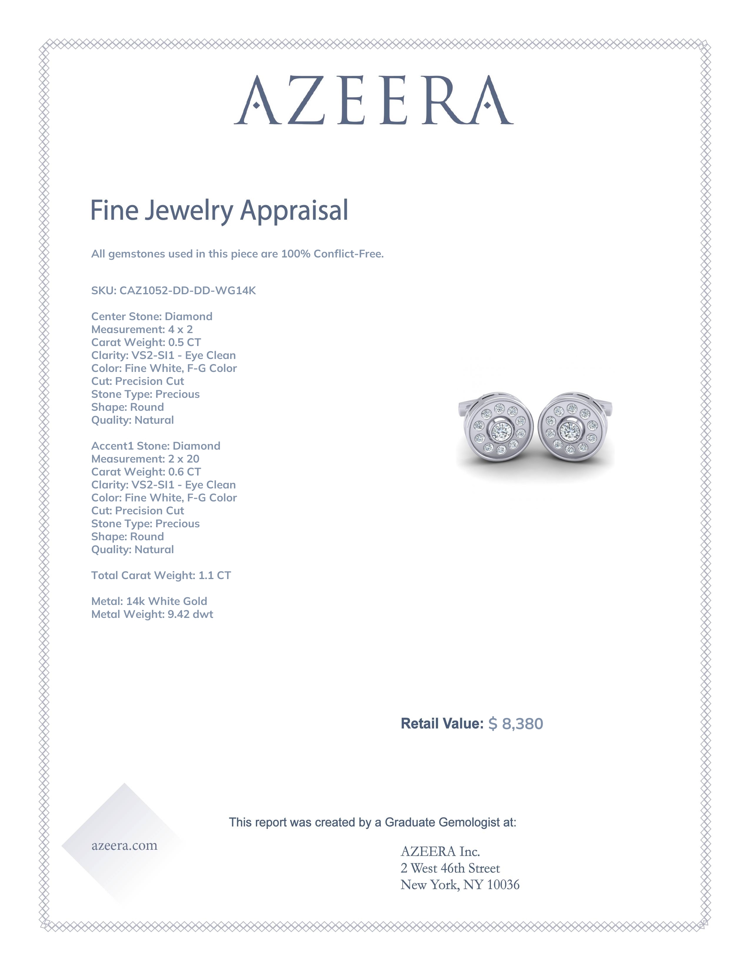 These Diamond 14k White Gold cufflinks are for the gentleman who appreciates the symphony of fine craftsmanship, these 14k White Gold cufflinks are the silent conductor, orchestrating an aura of undeniable elegance. These custom cufflinks can be personalized with 12 different gemstones, to compliment your ballroom attire. This Pair Of Cufflinks Features A Gemstone And Metal Design That Is Elegant without Compromising On The integrity Of The Gems. Each Cufflink Hosts 9 Brilliant Round Gems And One Large Brilliant Round Gem in A Bezel Setting Of Your Choice Over The Face Of The Piece. Order with ease, shine with confidence. Free shipping, returns, and a lifetime warranty make luxury worry-free.