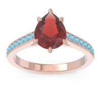 This 18K Rose Gold Garnet ring features a AAAA Pear Garnet, along with fine quality Swiss Blue Topaz. This Ring Features A Large Pear Shape Gem Surrounded By 6 Claw Prongs in A Cathedral Setting with Smaller Rounds Cascading Half Way Down The Shank. We only use the top 10% of gems available, those found in the finest jewelry shops across the world. This Garnet engagement ring can also be worn as an Garnet and Swiss Blue Topaz gemstone ring and added to your collection! Enjoy Free Shipping and Returns, Free Resize and a lifetime warranty.