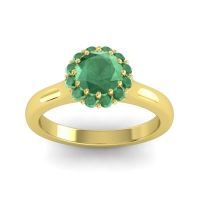 This 14k Yellow Gold Emerald ring features a AAAA Round Emerald stone, found across the finest boutiques in the world. We only use gems that are within the top 10% of material available. This ring can be worn as an Emerald engagement ring, or can also be added to your collection of gemstone rings. This Lavish Design Is All About Showing Off Its Brilliance. in An intricate Halo, 12 Stunning Round Brilliants Sit in A Shared Setting. The High Profile Cathedral Also Puts Emphasis On The Grandeur Of All Your Gems. We offer Free Shipping and Free Returns, along with a Free Resize. This ring also comes with a lifetime warranty which covers the integrity of our workmanship forever.