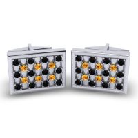 These personalized cufflinks feature Black Onyx and Citrine. We only use the top 10% of gemstones available, every facet meticulously placed, they create a masterpiece of radiance that captivates the senses. This Pair Of Cufflinks Features A Gemstone And Metal Design That Is Perfect with Patterned Shirts. in A Rectangle Shaped Face, Gems Alternate Position Like A Checkerboard Creating And Alluring And Pleasant Look. Each Cufflink Hosts 18 Brilliant Round Gems Of Your Choice in A Pave Setting Over The Face Of The Piece. For the one who appreciates the finer things, these mens cufflinks are an unspoken badge of distinction. Choose from a variety of gems to make a truly unique pair of custom cufflinks. Enjoy free shipping, free returns and a lifetime warranty.