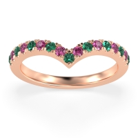 This Emerald wedding ring is casted in 14K Rose Gold and set with fine quality Emerald and Pink Tourmaline. All of the gemstones we use are of the top 10% available, those found in fine quality boutiques across the world. This Emerald wedding band can also be added to your collection of minimalist Emerald rings. This Chevron-shaped Pave Womens Band Is A Versatile Piece, Perfect For Stacking Or Solo Wear. Free shipping, returns, resizing, and a lifetime warranty ensure you love your purchase.