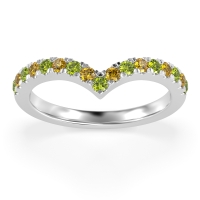 This Peridot wedding ring is casted in Platinum and set with fine quality Peridot and Citrine. All of the gemstones we use are of the top 10% available, those found in fine quality boutiques across the world. This Peridot wedding band can also be added to your collection of minimalist Peridot rings. This Chevron-shaped Pave Womens Band Is A Versatile Piece, Perfect For Stacking Or Solo Wear. Free shipping, returns, resizing, and a lifetime warranty ensure you love your purchase.