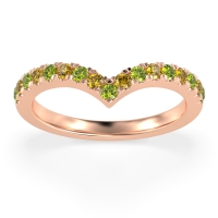 This Peridot wedding ring is casted in 14K Rose Gold and set with fine quality Peridot and Citrine. All of the gemstones we use are of the top 10% available, those found in fine quality boutiques across the world. This Peridot wedding band can also be added to your collection of minimalist Peridot rings. This Chevron-shaped Pave Womens Band Is A Versatile Piece, Perfect For Stacking Or Solo Wear. Free shipping, returns, resizing, and a lifetime warranty ensure you love your purchase.