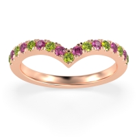 This Peridot wedding ring is casted in 14K Rose Gold and set with fine quality Peridot and Pink Tourmaline. All of the gemstones we use are of the top 10% available, those found in fine quality boutiques across the world. This Peridot wedding band can also be added to your collection of minimalist Peridot rings. This Chevron-shaped Pave Womens Band Is A Versatile Piece, Perfect For Stacking Or Solo Wear. Free shipping, returns, resizing, and a lifetime warranty ensure you love your purchase.