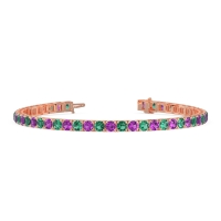 These 14K Rose Gold bracelets feature fine quality Emerald gemstones. This Classic Box Setting Tennis Bracelet Encircles Your Wrist with A Luminous Procession Of Round Gemstones, Each Meticulously Set in A Secure Square Frame. Free shipping, returns, and a lifetime warranty make luxury worry-free