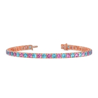 These 14K Rose Gold bracelets feature fine quality Swiss Blue Topaz gemstones. This Classic Box Setting Tennis Bracelet Encircles Your Wrist with A Luminous Procession Of Round Gemstones, Each Meticulously Set in A Secure Square Frame. Free shipping, returns, and a lifetime warranty make luxury worry-free