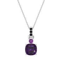 This Amethyst and Black Onyx Necklace is casted in 14k White Gold. This Women’s Classic necklace features exceptionally fine gemstones, on par with those found in the world's most exclusive boutiques and among the top 10% available globally. Contemporary Solitaire Pendant Featuring A Cushion-cut Center Stone. A Small Accent Stone Graces The Top, with A Gem Studded Bail. This necklace comes with a complimentary 18-inch chain. Enjoy the confidence of our 30-day, stress-free return policy—with return shipping fully covered. Each piece is also accompanied by a Lifetime Warranty, ensuring lasting beauty and peace of mind.