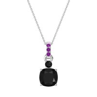This Black Onyx and Amethyst Necklace is casted in 14k White Gold. This Women’s Classic necklace features exceptionally fine gemstones, on par with those found in the world's most exclusive boutiques and among the top 10% available globally. Contemporary Solitaire Pendant Featuring A Cushion-cut Center Stone. A Small Accent Stone Graces The Top, with A Gem Studded Bail. This necklace comes with a complimentary 18-inch chain. Enjoy the confidence of our 30-day, stress-free return policy—with return shipping fully covered. Each piece is also accompanied by a Lifetime Warranty, ensuring lasting beauty and peace of mind.