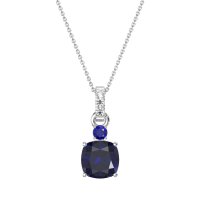 This Blue Sapphire and Lab Diamond Necklace is casted in 14k White Gold. This Women’s Classic necklace features exceptionally fine gemstones, on par with those found in the world's most exclusive boutiques and among the top 10% available globally. Contemporary Solitaire Pendant Featuring A Cushion-cut Center Stone. A Small Accent Stone Graces The Top, with A Gem Studded Bail. This necklace comes with a complimentary 18-inch chain. Enjoy the confidence of our 30-day, stress-free return policy—with return shipping fully covered. Each piece is also accompanied by a Lifetime Warranty, ensuring lasting beauty and peace of mind.