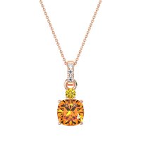 This Citrine and Lab Diamond Necklace is casted in 18K Rose Gold. This Women’s Classic necklace features exceptionally fine gemstones, on par with those found in the world's most exclusive boutiques and among the top 10% available globally. Contemporary Solitaire Pendant Featuring A Cushion-cut Center Stone. A Small Accent Stone Graces The Top, with A Gem Studded Bail. This necklace comes with a complimentary 18-inch chain. Enjoy the confidence of our 30-day, stress-free return policy—with return shipping fully covered. Each piece is also accompanied by a Lifetime Warranty, ensuring lasting beauty and peace of mind.