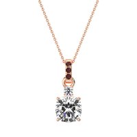 This Lab Diamond and Ruby Necklace is casted in 14K Rose Gold. This Women’s Classic necklace features exceptionally fine gemstones, on par with those found in the world's most exclusive boutiques and among the top 10% available globally. Contemporary Solitaire Pendant Featuring A Cushion-cut Center Stone. A Small Accent Stone Graces The Top, with A Gem Studded Bail. This necklace comes with a complimentary 18-inch chain. Enjoy the confidence of our 30-day, stress-free return policy—with return shipping fully covered. Each piece is also accompanied by a Lifetime Warranty, ensuring lasting beauty and peace of mind.