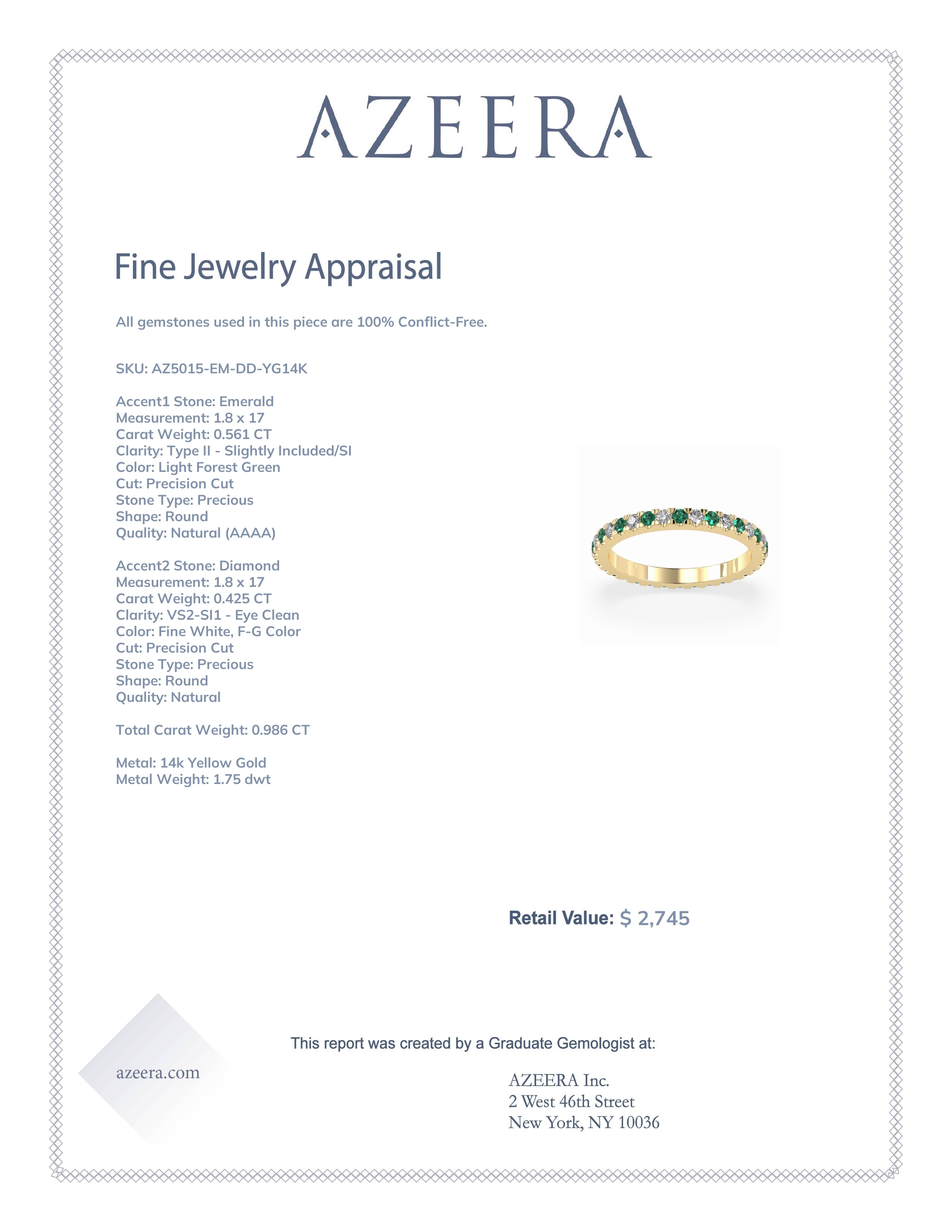 This Emerald wedding ring is casted in 14k Yellow Gold and set with fine quality Emerald and Diamond. All of the gemstones we use are of the top 10% available, those found in fine quality boutiques across the world. This Emerald wedding band can also be added to your collection of minimalist Emerald rings. The Classic Eternity Band Features Round Stones Pave Set All The Way Around. Free shipping, returns, resizing, and a lifetime warranty ensure you love your purchase.