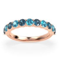 This London Blue Topaz wedding ring is casted in 18K Rose Gold and set with fine quality London Blue Topaz and Swiss Blue Topaz. All of the gemstones we use are of the top 10% available, those found in fine quality boutiques across the world. This London Blue Topaz wedding band can also be added to your collection of minimalist London Blue Topaz rings. This Classic Women's Band Has 11 Prong Set Gemstones Going Halfway Down The Shank. Free shipping, returns, resizing, and a lifetime warranty ensure you love your purchase.