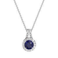 This Blue Sapphire and Lab Diamond Necklace is casted in 14k White Gold. This Women’s Halo necklace features exceptionally fine gemstones, on par with those found in the world's most exclusive boutiques and among the top 10% available globally. Timeless Pendant Featuring A Central, Round Stone Encircled By A Halo Of Smaller Gems. The Design Is Finished with A Split Bail, Also Adorned with Sparkling Gems. This necklace comes with a complimentary 18-inch chain. Enjoy the confidence of our 30-day, stress-free return policy—with return shipping fully covered. Each piece is also accompanied by a Lifetime Warranty, ensuring lasting beauty and peace of mind.