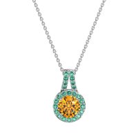 This Citrine and Emerald Necklace is casted in 14k White Gold. This Women’s Halo necklace features exceptionally fine gemstones, on par with those found in the world's most exclusive boutiques and among the top 10% available globally. Timeless Pendant Featuring A Central, Round Stone Encircled By A Halo Of Smaller Gems. The Design Is Finished with A Split Bail, Also Adorned with Sparkling Gems. This necklace comes with a complimentary 18-inch chain. Enjoy the confidence of our 30-day, stress-free return policy—with return shipping fully covered. Each piece is also accompanied by a Lifetime Warranty, ensuring lasting beauty and peace of mind.