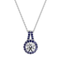 This Lab Diamond and Blue Sapphire Necklace is casted in 14k White Gold. This Women’s Halo necklace features exceptionally fine gemstones, on par with those found in the world's most exclusive boutiques and among the top 10% available globally. Timeless Pendant Featuring A Central, Round Stone Encircled By A Halo Of Smaller Gems. The Design Is Finished with A Split Bail, Also Adorned with Sparkling Gems. This necklace comes with a complimentary 18-inch chain. Enjoy the confidence of our 30-day, stress-free return policy—with return shipping fully covered. Each piece is also accompanied by a Lifetime Warranty, ensuring lasting beauty and peace of mind.