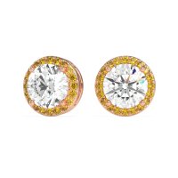 These Lab Diamond earrings and made in 18K Rose Gold with top quality Lab Diamond and Citrine gemstones. These Classic Halo Stud Earrings Feature A Dazzling Center Stone Encircled By A Halo Of Smaller Accent Stones, Creating A Brilliant And Timeless Look. The Halo Design Enhances The Sparkle And Presence Of The Studs, Making Them A Perfect Choice For Both Everyday Elegance And Special Occasions. Free shipping, returns, and a lifetime warranty make luxury worry-free