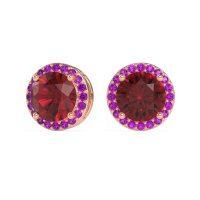 These Ruby earrings and made in 18K Rose Gold with top quality Natural Ruby and Amethyst gemstones. These Classic Halo Stud Earrings Feature A Dazzling Center Stone Encircled By A Halo Of Smaller Accent Stones, Creating A Brilliant And Timeless Look. The Halo Design Enhances The Sparkle And Presence Of The Studs, Making Them A Perfect Choice For Both Everyday Elegance And Special Occasions. Free shipping, returns, and a lifetime warranty make luxury worry-free
