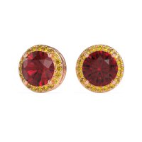These Ruby earrings and made in 18K Rose Gold with top quality Natural Ruby and Citrine gemstones. These Classic Halo Stud Earrings Feature A Dazzling Center Stone Encircled By A Halo Of Smaller Accent Stones, Creating A Brilliant And Timeless Look. The Halo Design Enhances The Sparkle And Presence Of The Studs, Making Them A Perfect Choice For Both Everyday Elegance And Special Occasions. Free shipping, returns, and a lifetime warranty make luxury worry-free